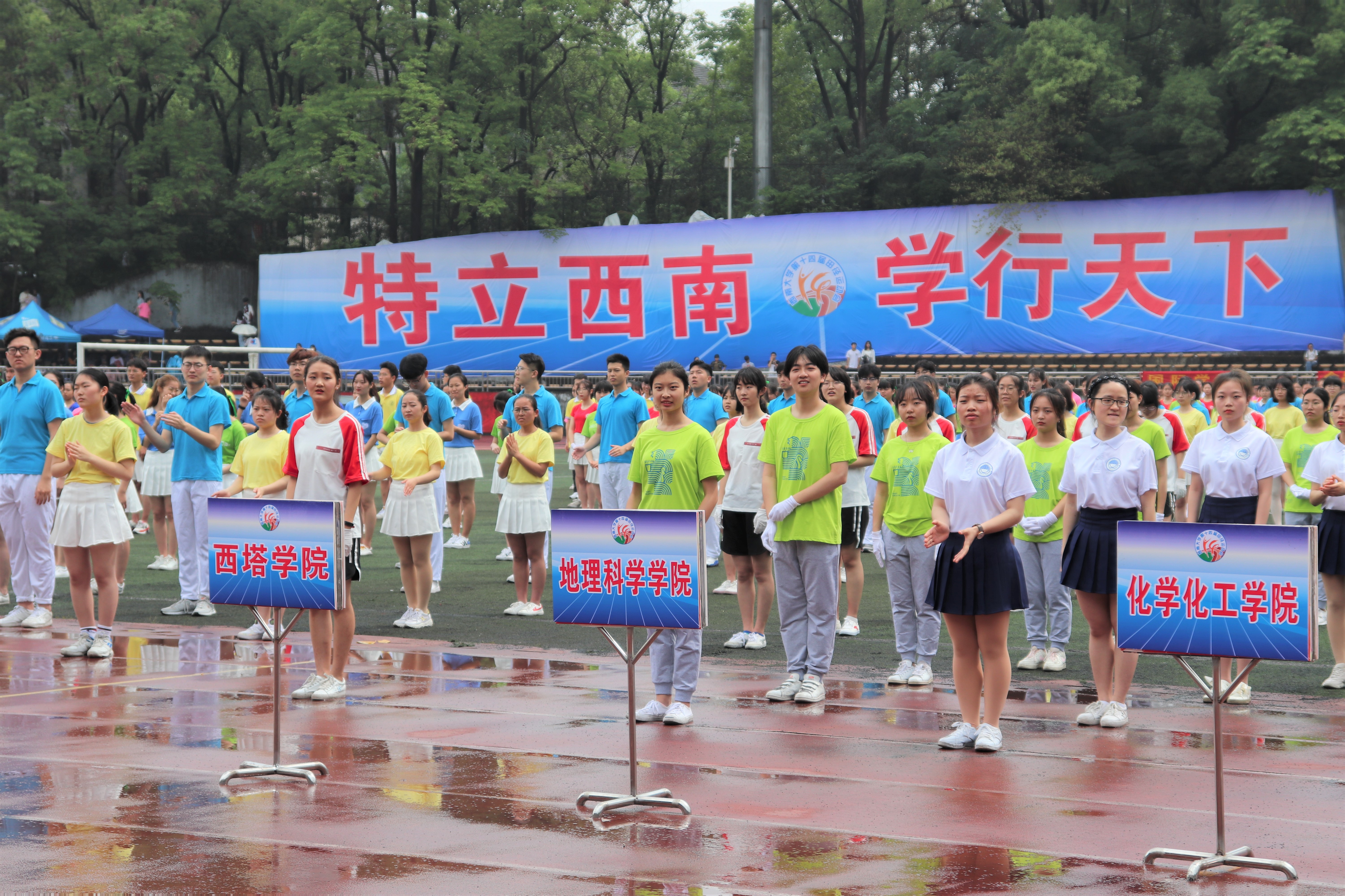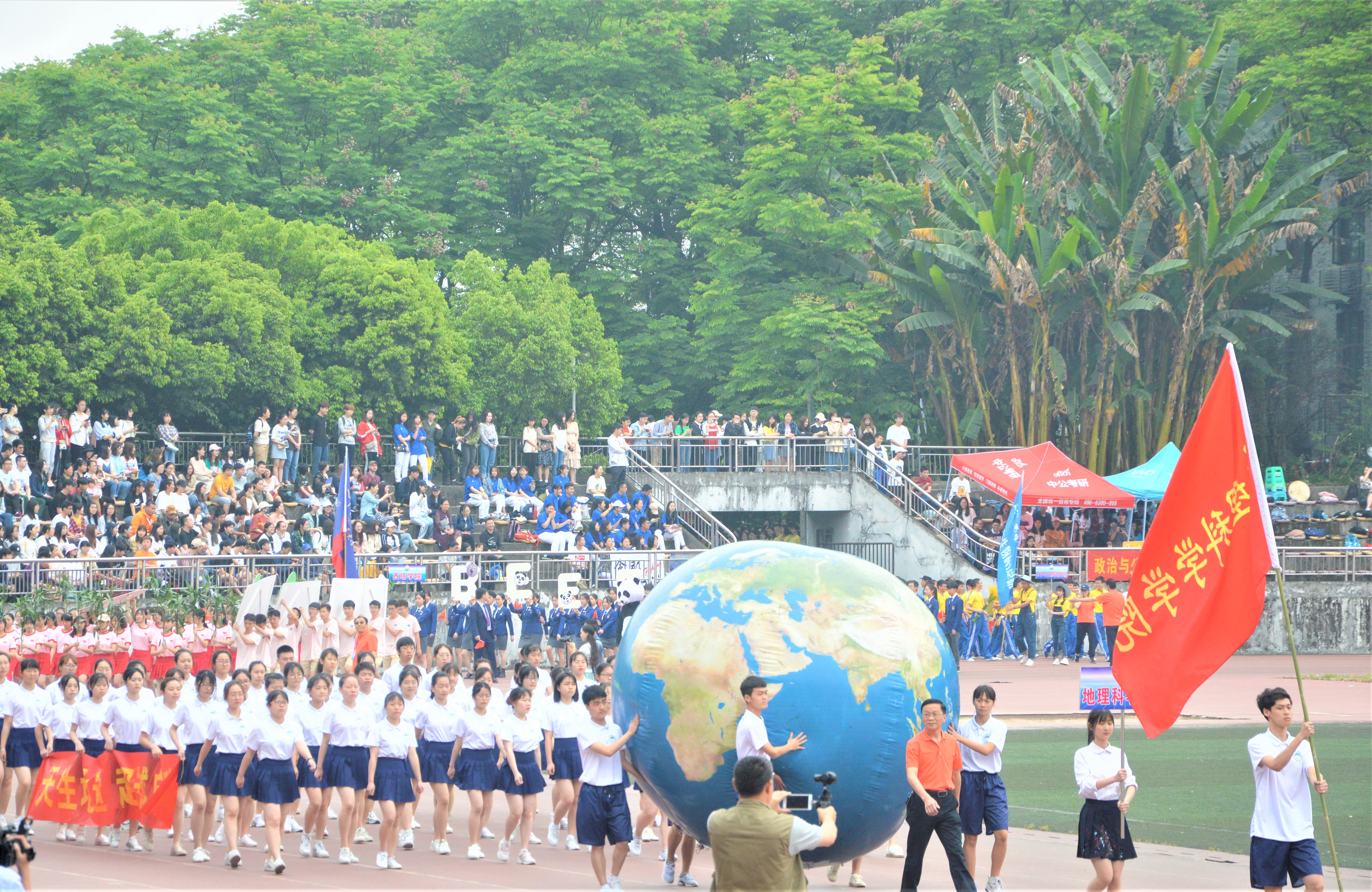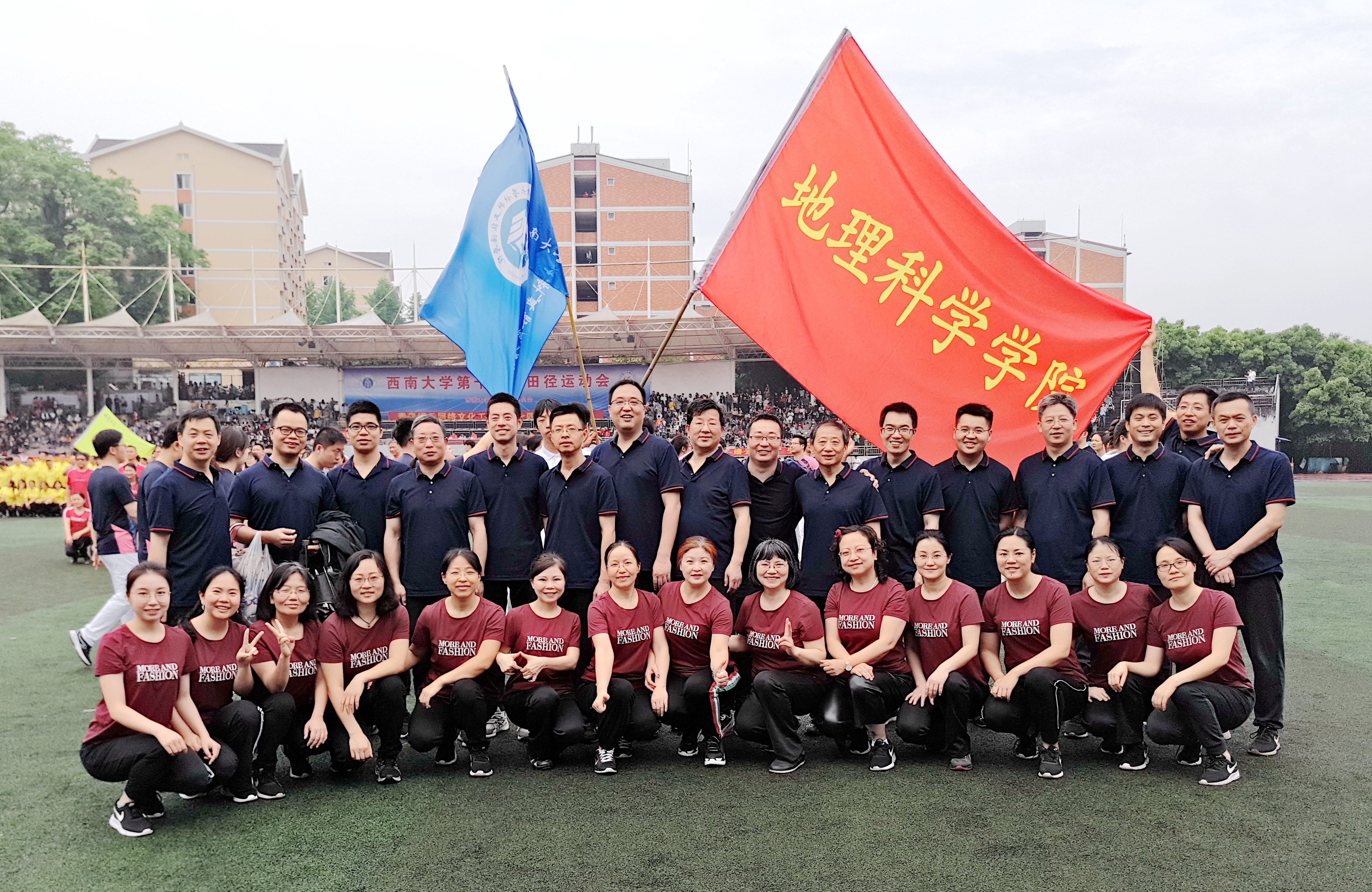 18日上午,开幕式在第二运动场隆重举行。由学院师生60余人组成的地理科学学院方阵在学院党委副书记何凯老师的带领下走过主席台。四位同学高举“地球模型”,方阵师生在主席台前高喊“天生地造,超越自我”的运动口号,引来运动场观众掌声连连。