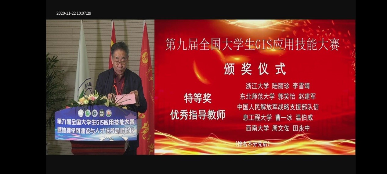 (图3第九届全国大学生GIS应用技能大赛颁奖仪式视频截图)