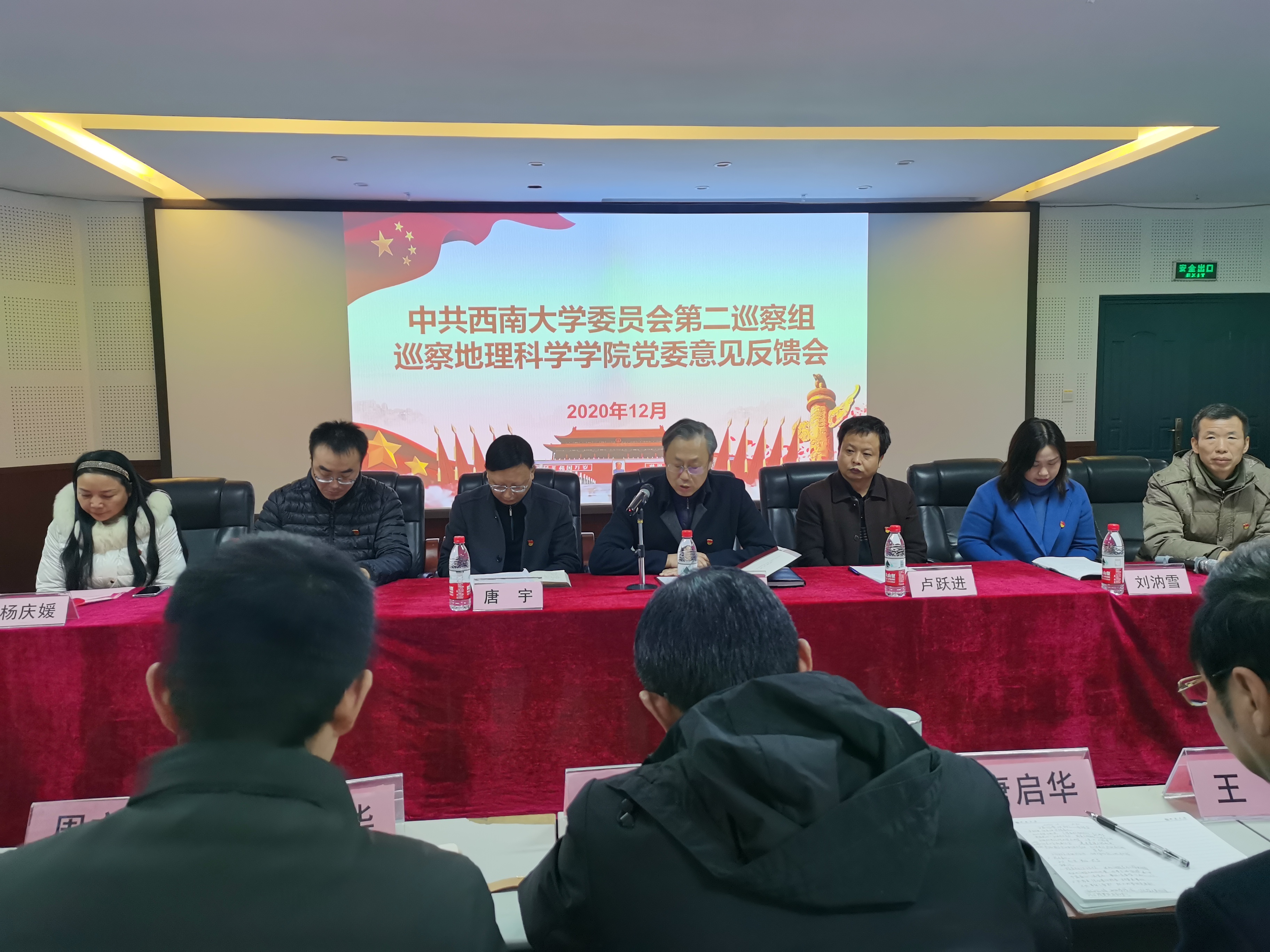 卢跃进组长向参会人员介绍了巡察组在巡察期间整体工作情况,并向学院反馈了巡察意见。学院党委书记喻尚其同志代表学院领导班子作了表态发言。