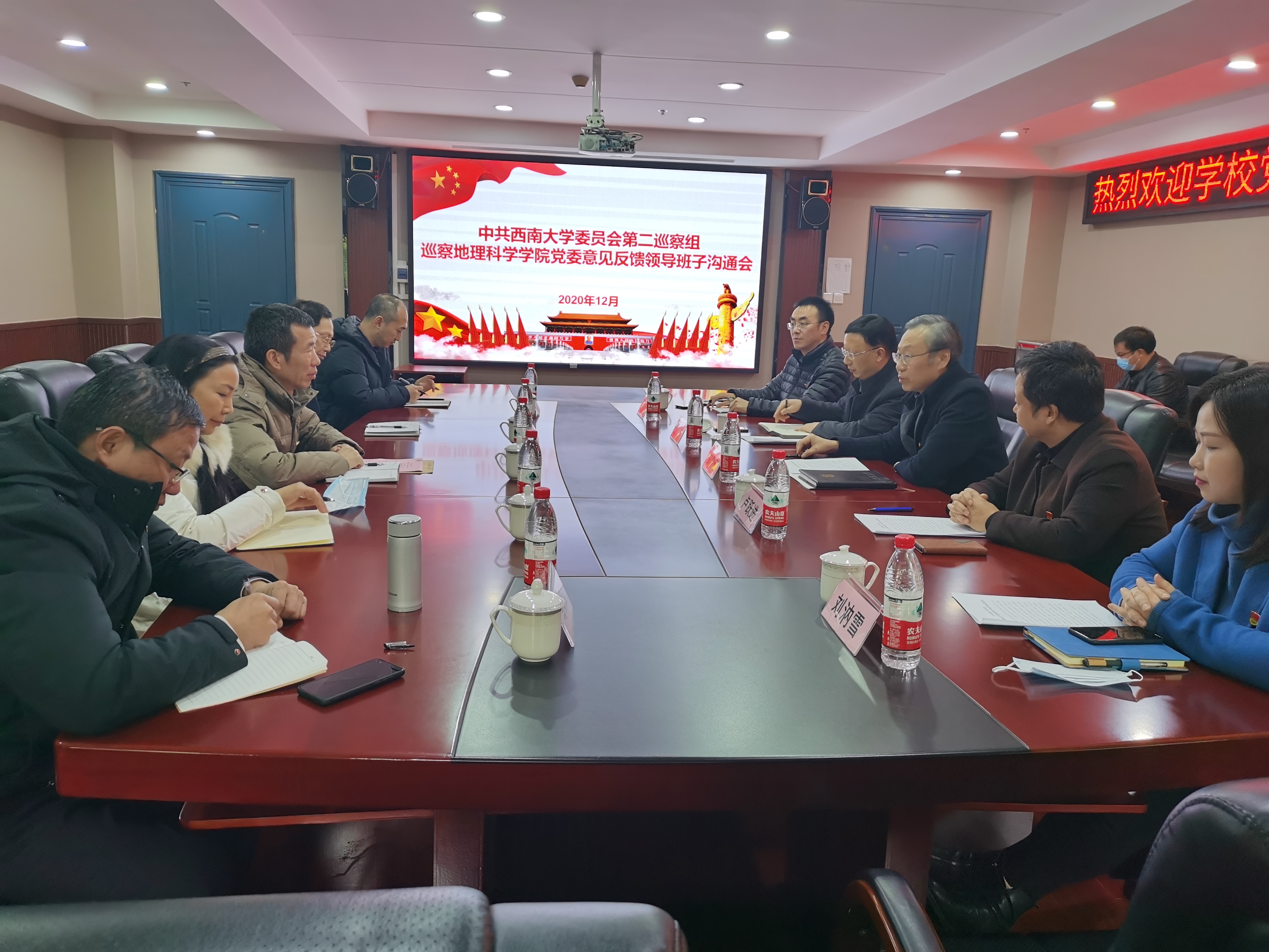 12月11日下午,学校党委第二巡察组巡察哔咔漫画 党委意见反馈会在学院301会议室召开。学校党委副书记、巡察工作领导小组副组长安春元,校纪委副书记、党委巡察工作办公室主任唐宇,第二巡察组组长、校党委委员、经济管理学院党委书记卢跃进,巡察组副组长刘汭雪及巡察组副组长任元明出席会议。学院党政领导班子、在校全体教职工、离退休教师代表及学生代表参加会议。副院长杨庆媛同志主持会议。