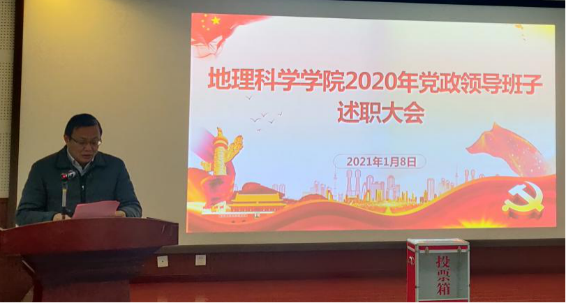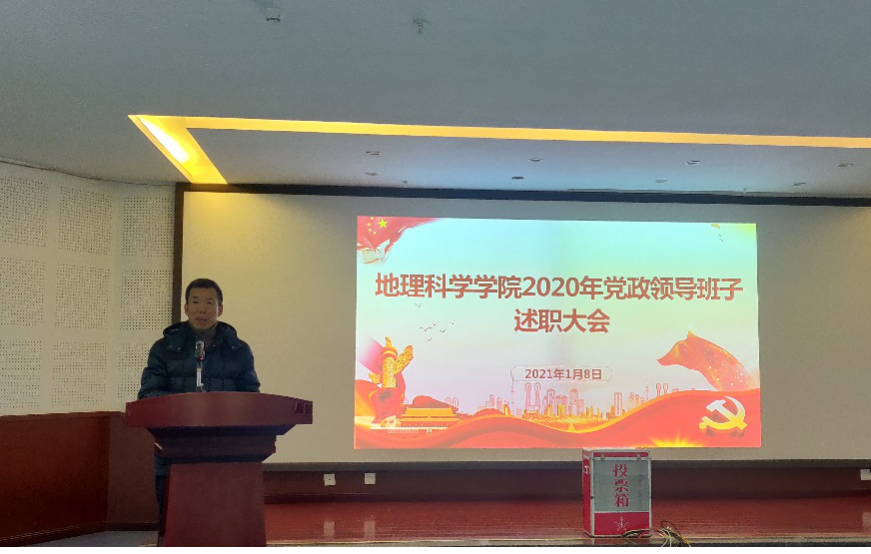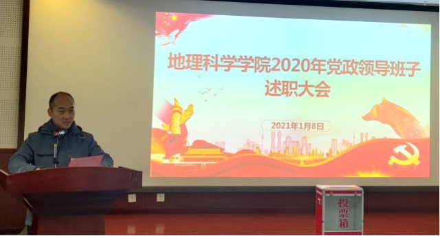 随后,王勇副院长从服务师生和本科教学方面进行述职。一年来,推动完成地理科学师范专业认证整改、疫情期间线上教学有序高质量进行,师范生线下实习考核顺利完成,教育教学研究和课程思政建设不断深化,教学成果奖数量实现新增长,接下来要进一步加强课程改革力度。