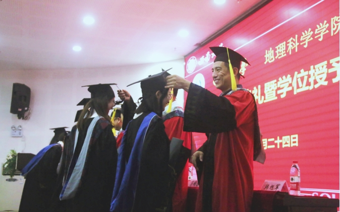 2017级地理科学专业程贵山同学代表2021届毕业生发言,他在发言中回顾大学四年美好时光,衷心感谢母院的辛勤培育,并祝愿毕业生前程似锦、扬帆起航。2020级地理科学(师范)专业王美泽同学代表低年级学生向学长学姐们表达衷心的祝福,祝愿他们毕业快乐,前程万里。教师代表宗会明教授寄语毕业生,希望毕业生们保持勤学好问的学习态度和积极向上的生活态度;要秉持善良、坚守底线、拒绝躺平、迎难而上,争做时代追梦人。