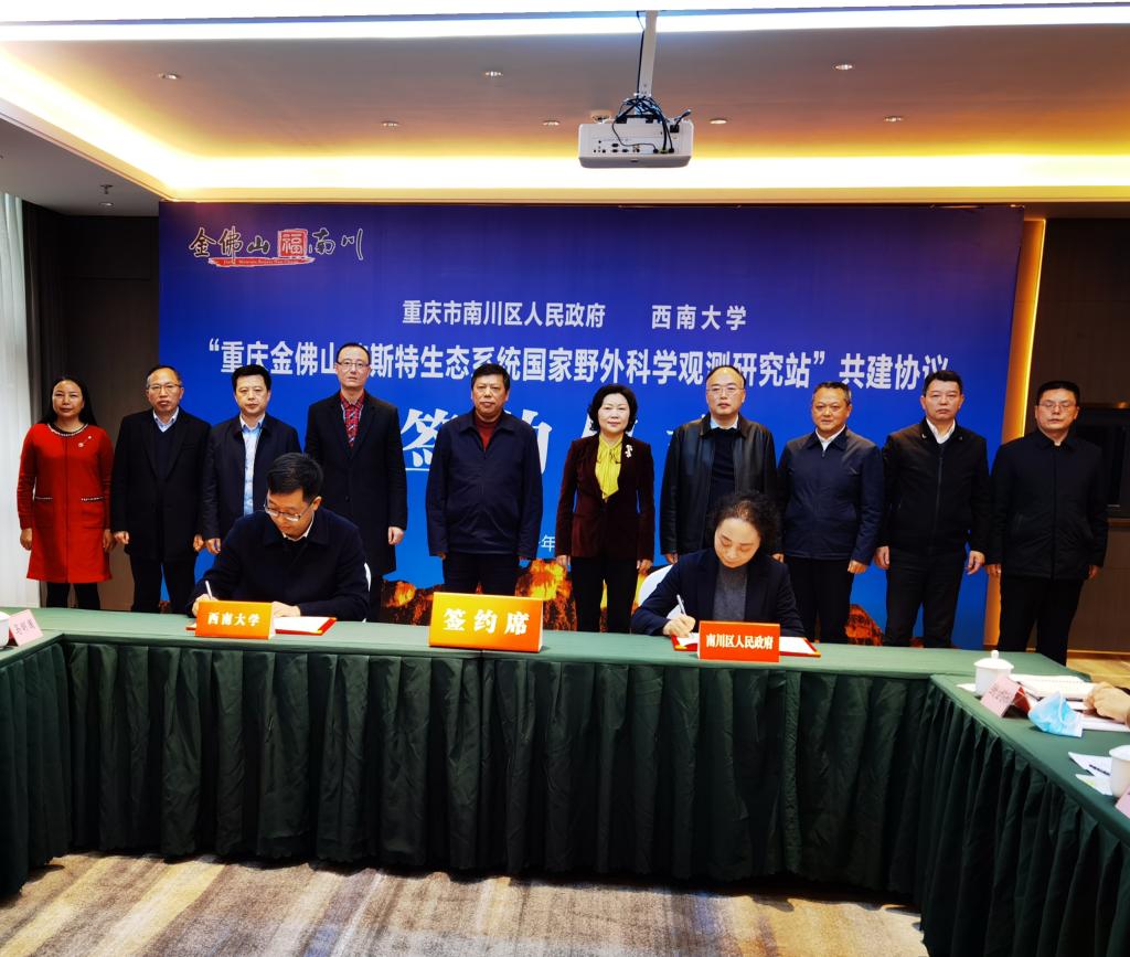 12月10日,学校校长张卫国、副校长赵国华带队与南川区签订合作协议,共建重庆金佛山喀斯特生态系统国家野外科学观测研究站,并商讨在科技创新、乡村振兴、基础教育、文化旅游、人才培养等领域广泛开展合作。南川区委书记丁中平、区委副书记、区长施崇刚等出席会议。