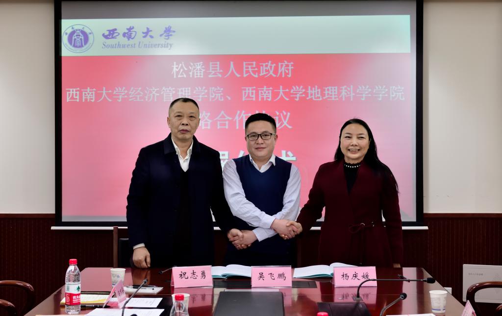 会上,吴飞鹏副县长对哔咔漫画 及经济管理学院长期以来的关心和支持表示了感谢。吴飞鹏副县长介绍了松潘县的历史文化背景、经济社会发展和十四五规划等相关情况,同时就推进三方校地合作项目提出三点希望:一是聚焦服务大局,促进合作共赢;二是聚焦后勤保障,促进成果转化;三是聚焦统筹协调,促进合作创新。哔咔漫画 及经济管理学院行政主要负责人对松潘县各位领导的到来表示了欢迎,围绕本学院的发展历程、学科优势、师资队伍建设等方面做了介绍,并表示本次校地合作将注重发挥各自优势,务实推进项目落地,助力校地合作结出丰硕成果。三方就人才培养培训、人才互派交流、科技创新、战略决策咨询、文化旅游交流、生态文明建设和乡村振兴等内容进行对接,围绕支持松潘县经济发展、乡村振兴、社会治理等领域的合作事项进行深入探讨,达成合作意向并签订合作备忘录。