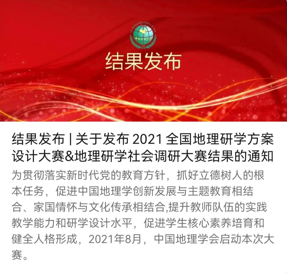 为贯彻落实新时代党的教育方针,抓好立德树人的根本任务, 2021年8月,中国地理学会启动了“2021全国地理研学方案设计大赛&地理研学社会调研大赛”。近日,中国地理学会公布了本次大赛的结果。哔咔漫画 组建的多支队伍荣获佳绩,哔咔漫画 学子共有9支参赛队伍获奖,其中一等奖(最高奖)2项、二等奖2项、三等奖3项、优秀奖2项。