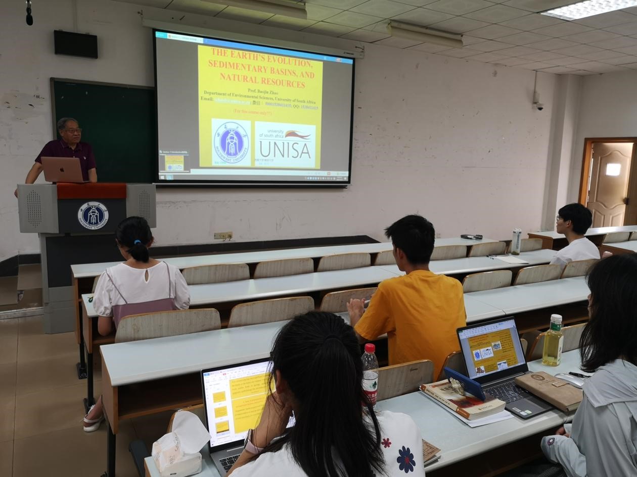 7月11日-7月22日,受学院教学分管副院长邀请,南非大学地质系赵宝金(Prof. Baojin Zhao)教授莅临哔咔漫画 为本科生讲授国际课程《地球的演化、沉积盆地与自然资源》,在常态化疫情防控情况下,本门课程采取了线上线下相结合的授课方式,选课总人数达90人。