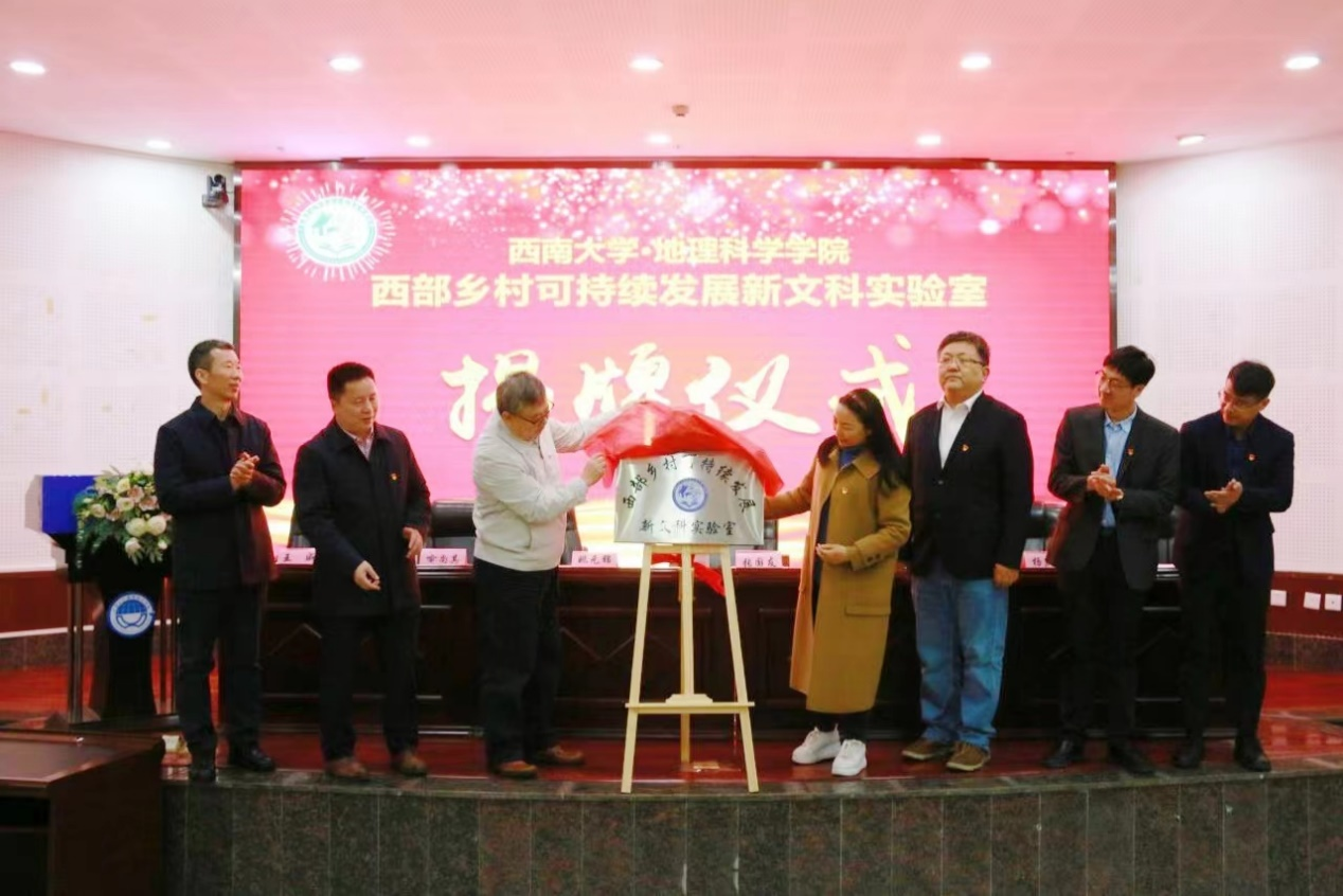 张国友秘书长代表中国地理学会为西部乡村可持续发展新文科实验室揭牌,并对新文科实验室的成立表示祝贺并提出建设期望。