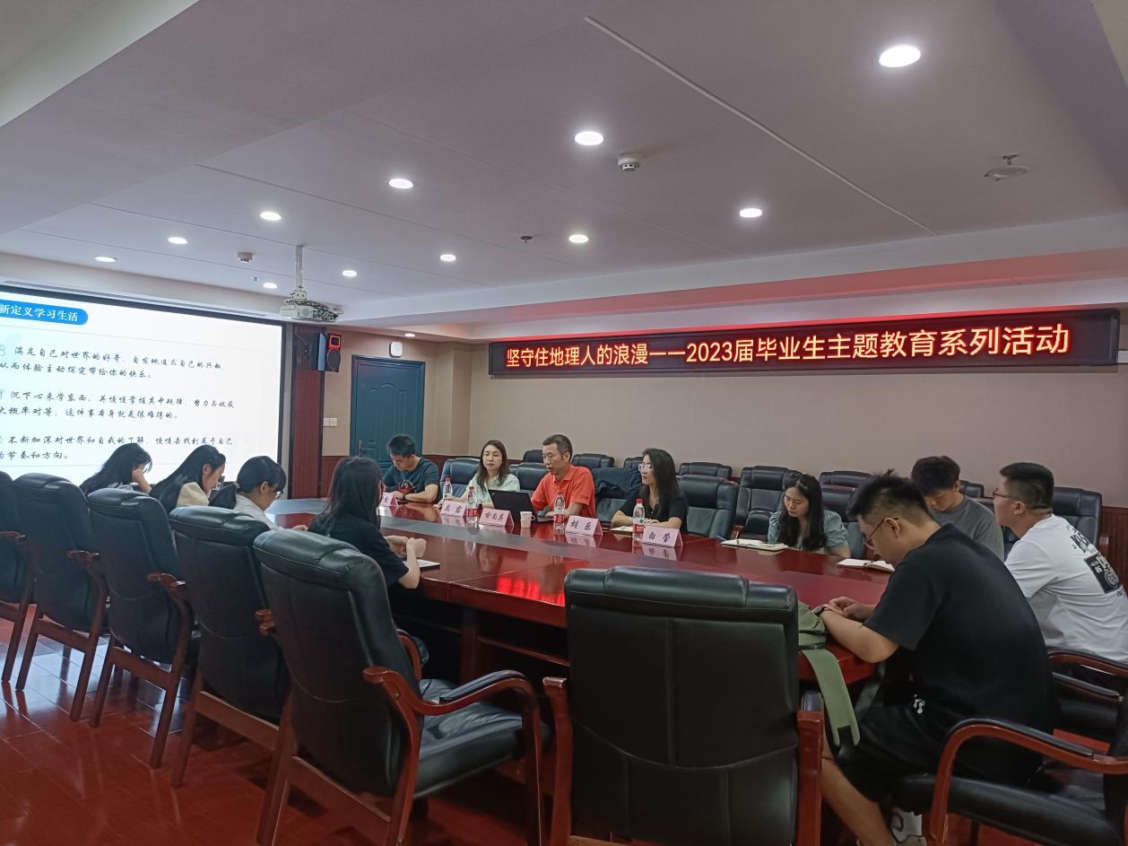 最后,辅导员贾智杰老师总结此次会议,希望毕业生们明确职业规划和发展方向,并为未来发展奋斗不息。同时,要铭记大学时期的经历,在今后的学习、工作和生活中不断成长进步,以地科院优秀校友身份继续为学院、学校的发展贡献力量。