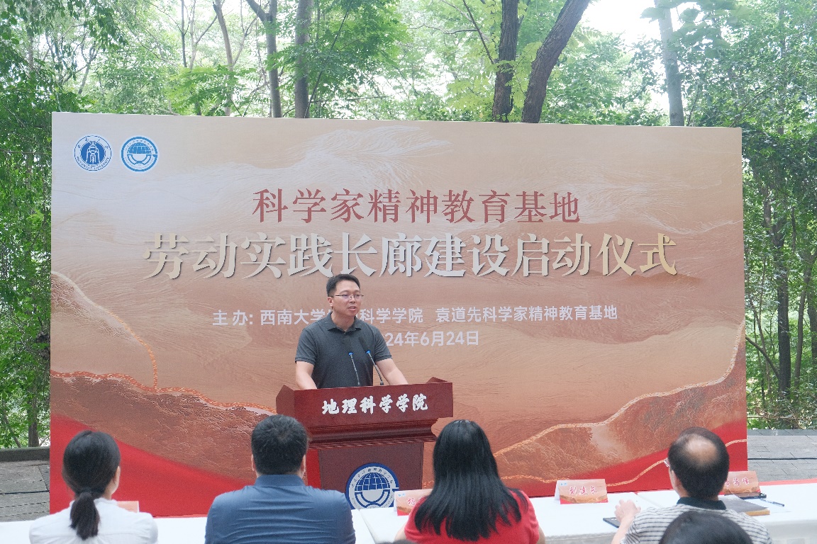 田晓伟在发言中谈到,今年学校启动实施劳动教育建设区计划,旨在切实抓好劳动教育工作,探索将劳动教育融入人才培养体系和实践教学体系,在全国高校具有“先试先行”的示范引领作用,希望学院提高思想站位,将劳动教育与人才培养、专业建设、学科建设和文化建设相结合,凸显有地学特色的劳动实践教育,把“科学家精神教育基地”劳动实践长廊打造成校级劳动教育示范平台和校园文化亮点。