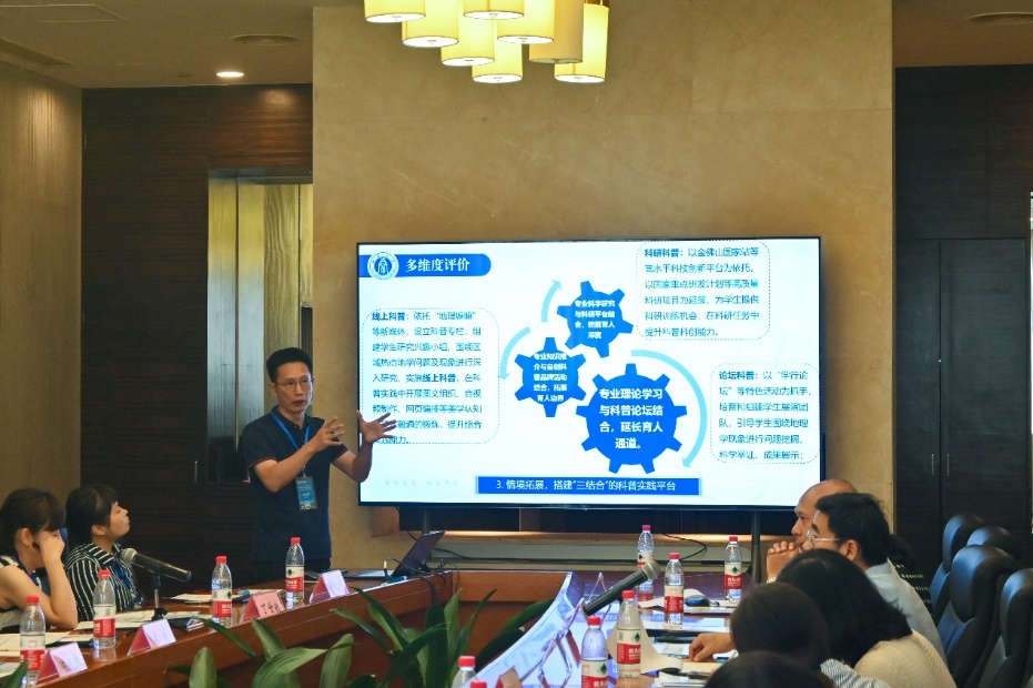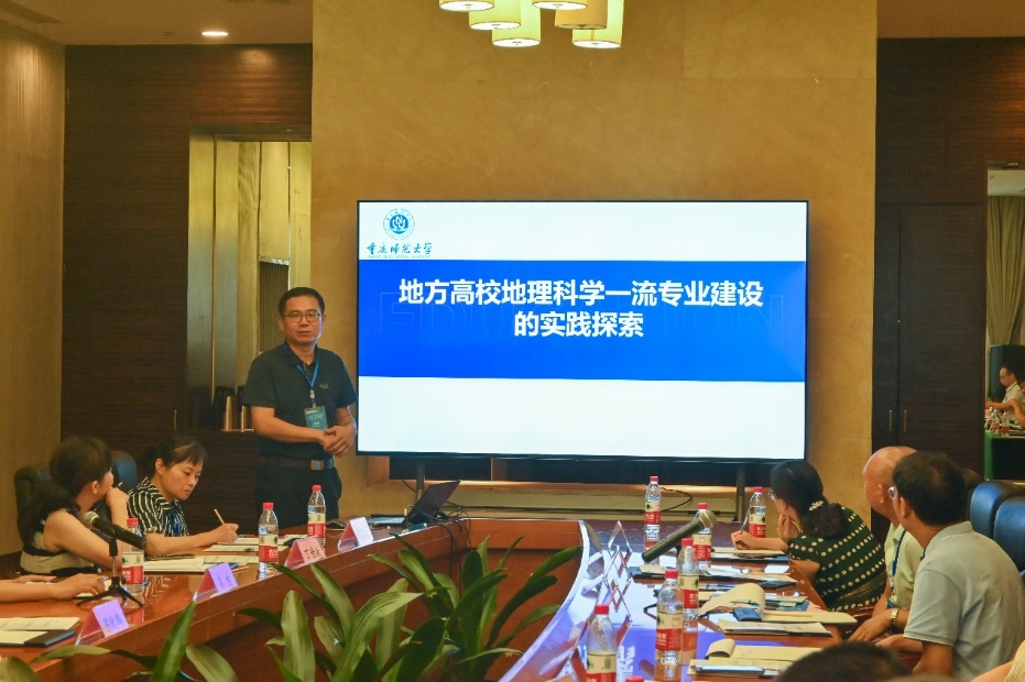 主旨报告环节,重庆大学陈猷鹏教授、哔咔漫画 王勇教授、重庆师范大学高鑫教授、重庆工商大学吴虹教授和哔咔漫画 陈俊华副教授分别以《环境监测课程建设与思考》《师范专业认证理念下地理科学一流专业建设的思考与实践 》《地方高校地理学一流专业建设的实践探索》《提高环境工程本科生的创新实践能力与实践 》《地理学创新人才培养的科普育人路径探索研究》为题作了会议报告。