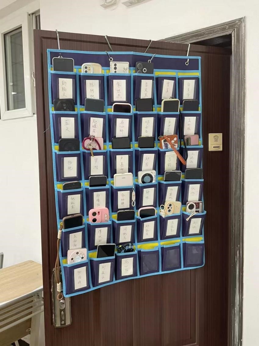在通识必修课、专业必修课等全体2024级本科生必须出席的课程中,学院全面实施无手机课堂制度。每个新生班级均配备了专门的手机袋,手机袋中放置写有同学姓名的小卡片,同学们需在课前将手机放入标有各自名字的手机袋内。关于手机袋的携带与保管工作,则由各班级班委轮流负责,班委需在课前将手机袋挂在教室门上,以便同学们使用。