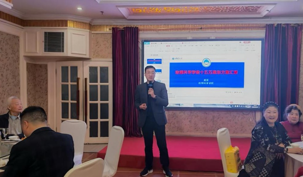 唐强院长汇报了学院过去一年的发展进展和“十五五”规划思路。“十五五”期间,学院将基于两个面向、一个引领、四大任务和两大支撑的“2142”发展战略,力争建设国内一流、具有西大辨识度的地理学科。