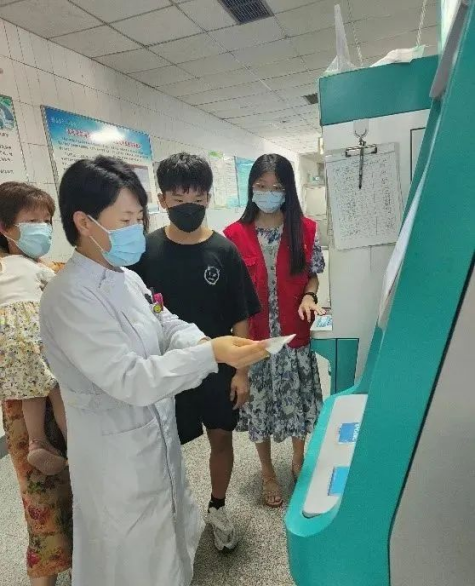 于月菡同学于2022年7月18日,前往山东省高密市人民医院申请成为志愿者。在医院里,她主要负责在门诊一楼东放射科签到机处协助患者签到、关注微信公众号、绑定手机号等。在她的帮助下,患者及家属能够运用医院新式签到机,减少了排队等待的时间,为患者及其家属提供了高质量的服务。