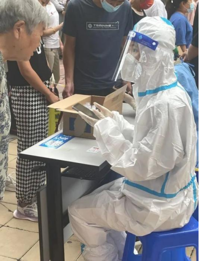 在十九岁的这个夏天,我终于有能力与勇气承担起心中常念道的“青年责任”。从起初简单协助维护核酸检测现场秩序,到学习如何进行采样人员信息登记,再到主动请求协助进行入户核酸采样;从开始的手足无措,到后来的游刃有余;从“红马甲”到“小蓝”,到“大白”......只有亲身体验,才能切实理解防护服、隔离衣后的艰辛与不易。“今天我已经登记七八百人的信息了!”我心想着。像是在跟前一天的自己“比业绩”,重复单一的、看似枯燥的志愿服务被我赋予了新的意义,这意味着:相比于昨天,今天的我帮助了更多的人。