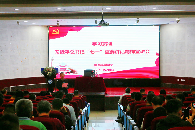 为深入学习贯彻习近平总书记“七一”重要讲话精神,深刻理解和把握习近平总书记“七一”重要讲话的重大意义、丰富内涵、核心要义和实践要求,进一步统一思想行动、凝聚智慧力量,更好地做到学史明理、学史增信、学史崇德、学史力行。2021年10月8日下午,学习贯彻习近平总书记“七一”重要讲话精神宣讲会在哔咔漫画 101报告厅举行,学校党委常委、副校长陈时见主讲,哔咔漫画 党委主要负责人主持,材料与能源学院、哔咔漫画 全体教职工参会。