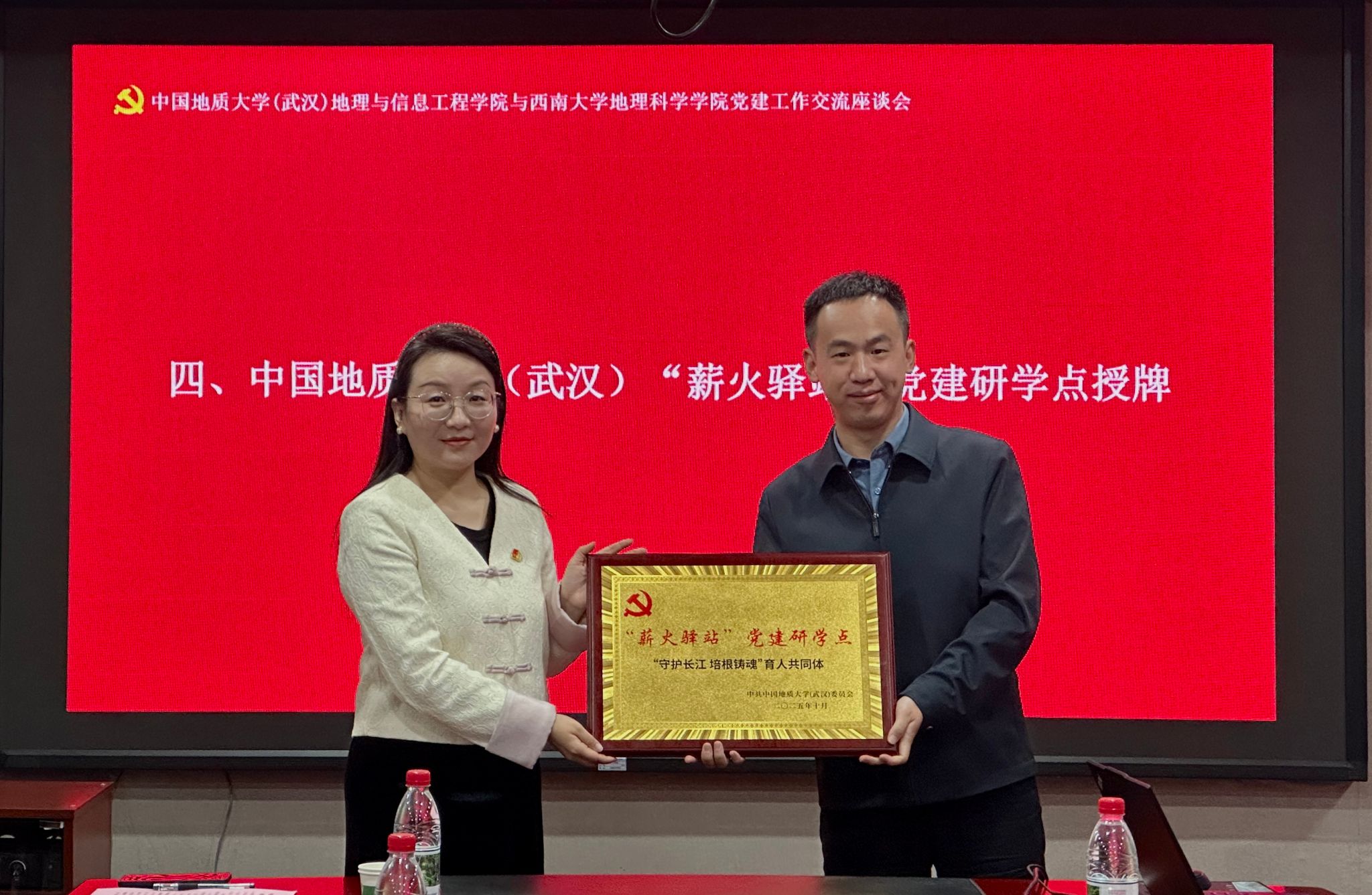 会议期间举行了授牌仪式。中国地质大学(武汉)地理与信息工程学院向哔咔漫画 授予“薪火驿站”党建研学点称号,哔咔漫画 授予对方“党建联盟”称号。最后,与会人员聚焦党建工作、学生工作、党务工作队伍建设等相关议题展开探讨,现场气氛热烈,交流成果丰硕。