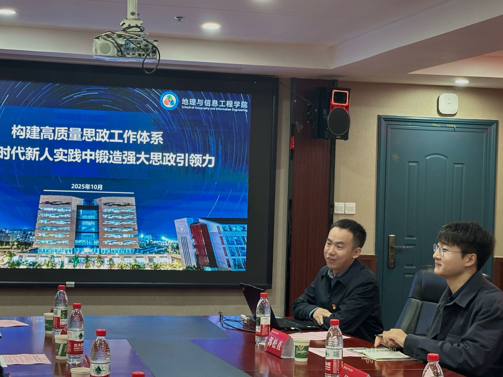 为深化高校党建工作经验互鉴、推动创新发展,10月27日上午,中国地质大学(武汉)地理与信息工程学院党委副书记熊程一行9人来院开展党建工作交流。学院党委副书记、纪委书记胡乐主持座谈会,两院辅导员、专职组织员、学生党支部书记代表等参加会议。