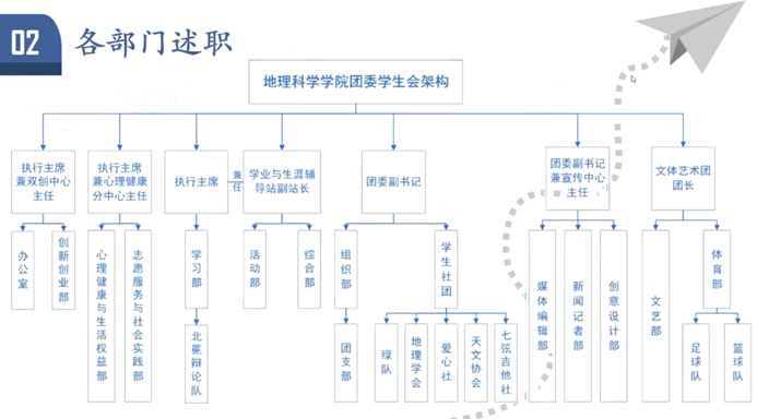 其他各部门负责人也进行了详细全面的述职,这将为下学期的工作奠定良好的基础。各部门负责人一致表示,地科院团学集体将切实履行服务每一个地科人的职责,努力将团委学生会建设成为学习型、创新型、服务型的健康学生组织。