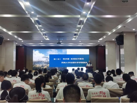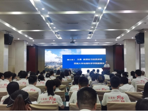 陕西师范大学实习学生代表张雨阳发言。她满怀着对地理学的热爱和对此次旅途的期待,代表全体同学做出郑重承诺:保证遵守实习纪律,认真完成实习任务。希望通过本次实习,不断锤炼本领,赓续地科薪火,鸣奏时代华章。