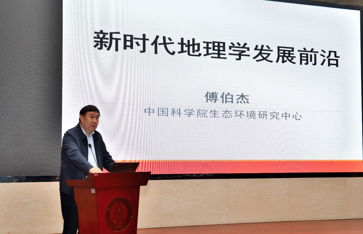 学院党委书记姚元锦主持会议,会议伊始,姚元锦依次介绍与会专家与领导,并对他们表示诚挚欢迎。随后,中国科学院院士、中国地理学会监事长傅伯杰研究员作了《新时代地理学发展前沿》的学术报告,介绍了地理学的基本特征和发展过程,提出新时代地理学在发展目标、研究主题、研究方法、数据来源、研究范式方面的新趋势,指出新时代地理学已从定性描述向具有独特研究手段的定量化转变,总结了地理学研究进展、展望以及地理学综合研究的前沿热点,提出地理学服务国家战略需求、支撑经济社会可持续发展等学科使命,并对哔咔漫画 在地理学发展方面取得的成绩表示赞扬。